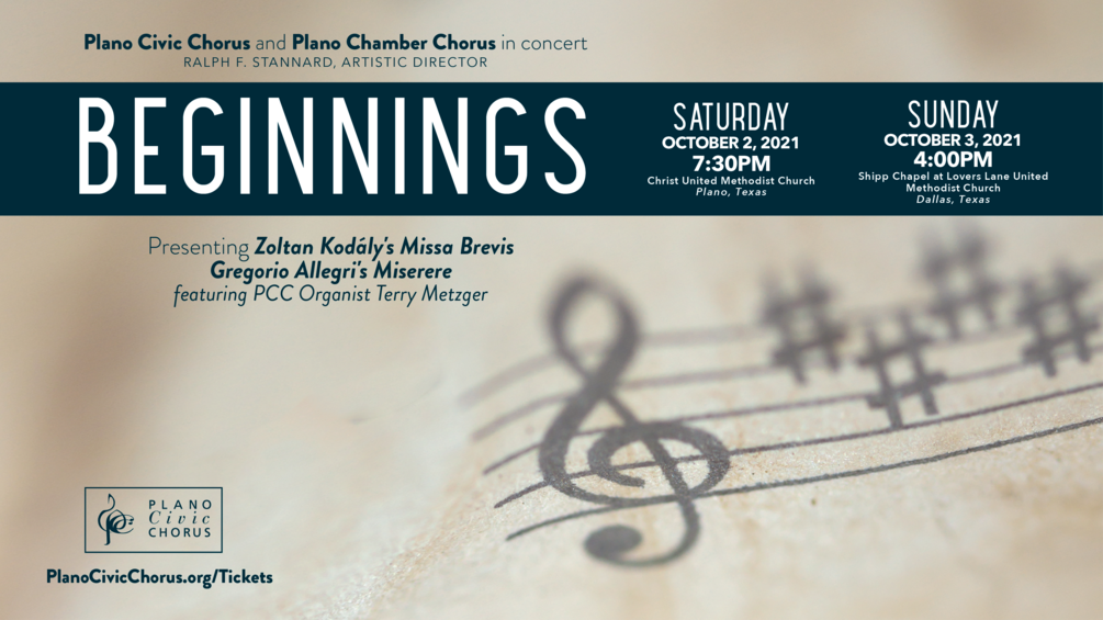 Plano Civic Chorus' first concert of their 49th season, "Beginnings" was Saturday, October 2nd at 7:30pm at Christ United Methodist Church in Plano.